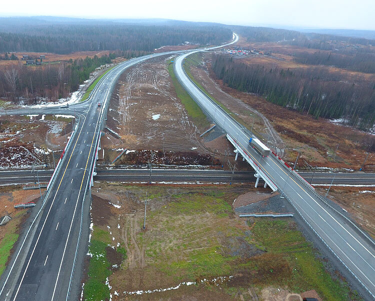 На трассе Р-255 «Сибирь» в Красноярском крае после реконструкции открыли путепровод через Транссиб В ходе работ на 702-м км мостовики возвели, по сути, два искусственных сооружения. Строительство левого путепровода и подходов к нему завершилось ещё в прошлом году. После открытия движения на этом объекте строители смогли приступить к демонтажу существующего неремонтопригодного искусственного сооружения, построенного в 1960-е годы. Правое направление возводилось на месте старого путепровода. Одним из самых технически сложных и трудоёмких этапов реконструкции стал монтаж пролётного строения над железнодорожными путями. Работы проводились в течение нескольких часов, во время технологических «окон» в графике движения поездов. Благодаря согласованным действиям транспортных ведомств – ФКУ Упрдор «Енисей» и ОАО «РЖД» – работы завершили в кротчайшие сроки. Длина каждого путепровода – 54,5 м, подходов к ним – 2,5 км. Основание дорожной одежды выполнено из цементобетона, покрытие – из высокопр