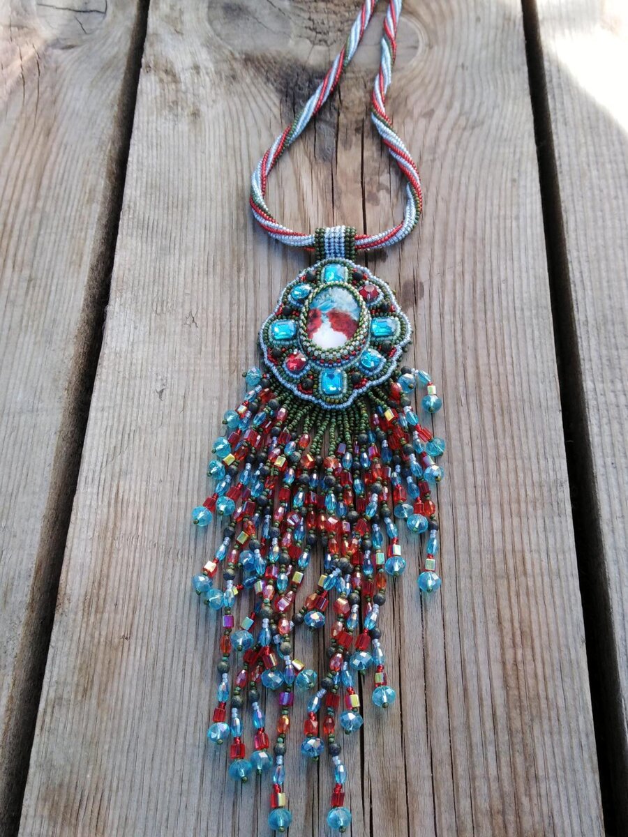 Во все века женщины любили украшать себя . В настоящее время «этника» в тренде. Когда мне пришла идея создания этого украшения, к какой категории его отнести придумать не могла, что это этника и бохо. Но сотворить что то эдакое не совсем современное, что то близкое к стилю этно очень хотелось. Ведь Бусы, серьги, браслеты, кольца , пояса, кулоны, сумочки и другие украшения или аксессуары в этническом стиле в моде были всегда, но выставив фоточки изделия получила кучу вопросов, не бохо ли это стиль? В общем так я толком и не знаю бохо это или этника с национальным характером. На мой субъективный взгляд, к какому бы стилю это украшение не отнести, оно несомненно станет изюминкой вашего гардероба. Хотите сделать такое своими руками? Легко, посмотрите видео мк и у вас всё получится!)