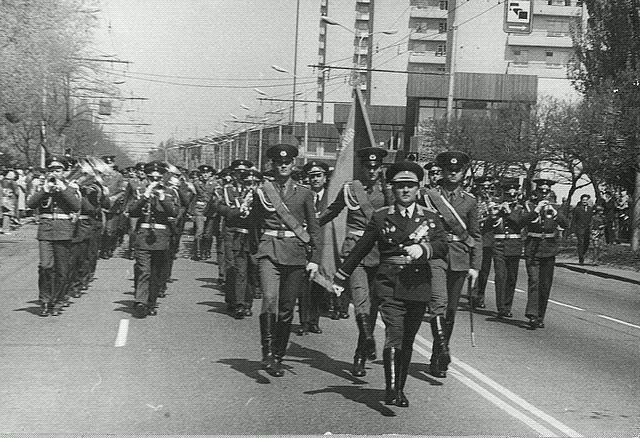 ДВВПУ - на выпуске, при торжественном прохождении, бросали вверх 1 рубль. Сапоги гладили несколько особо озабоченных, из армейцев. Вставки в погонах были почти у всех, как и проволока в подворотничке. Особым шиком было ходить в отбеленном хлоркой ХБ. В 1988 или 1989 начали вводить новую форму, синтетический камуфляж. Нам дали закончить в старой. Выпускам до 1988 года разрешали носить с ХБ фуражки, нам уже запретили. **