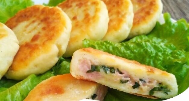 Готовиться быстро. Красиво, сытно и вкусно! Такое блюдо можно сделать не только для гостей, но также на завтрак или на пикник! Для приготовления нам понадобиться : Нам нужны для основы: Для начинки можно взять такие продукты: Приготовление : Сделать начинку. На крупной терке натереть ветчину, а на мелкой – сыр. Зеленый лук промыть, обсушить, мелко порезать. Всё перемешать. Начинка готова! Сделать основу для нашей аппетитной закуски. Отправить в глубокую миску творог. Посолить его. Присыпать молотым перцем. Вбить 1 некрупное куриное яйцо. Измельчить очищенный чеснок. Добавить в смесь. Всыпать муку. Перемешать: сперва ложкой, а потом – руками. Присыпать стол мукой. Сделать из творожной массы колобки. Каждый из них слегка придавить ладонью. Из начинки сделать шарики. Выложить их на тесто, прямо в серединку заготовки. Закрыть начинку тестом. Придать заготовкам форму шариков. Обвалять в муке. Слегка придавить заготовки лопаточкой, чтобы немного расплющить их. Разогреть на сково