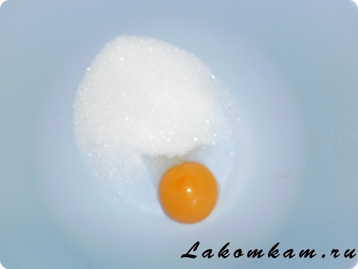 Приготовление домашнего «Твикса». Займёмся тестом. Соединяем яичный желток с сахаром,