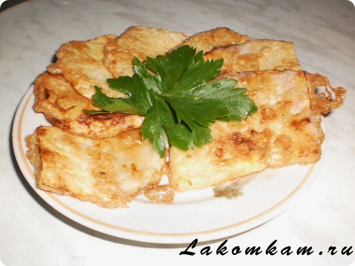Макаем в взбитое вилкой яйцо и жарим в хорошо разогретой сковороде с растительным маслом.