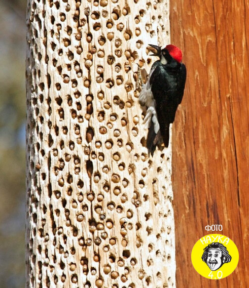 📷 Желудевый дятел делает запасы любимых плодов | НАУКА 4.0
