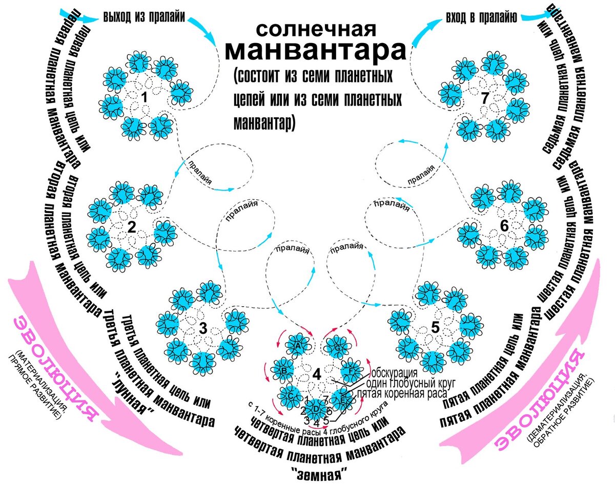 Манвантара – 26 000-летний период равный одному Великому году, в течении которого двенадцать созвездий Зодиака совершают большой круг движения по небесам. Великий год содержит в себе разные эпохи, соответствующие знакам Зодиака, в которых можно увидеть повторяющиеся узоры. Во всем существующем хаосе, можно заметить безупречный порядок, в который включен каждый человек, как часть Великого Плана Эволюции. В новой эпохе, для дальнейшего своего духовного развития, необходимо построить и интегрировать в своем индивидуальном сознании тело Света. «ГОСПОДЬ показывает двенадцать знаков Зодиака – двенадцать шаров выстроившись вокруг Святой Троицы. Движение идет справа на лево – первый шар – созвездие Водолея, последний двенадцатый – созвездие Рыб, на котором стоит крест, поставленный после передачи полномочий Аватара Иисусом Богу Тоту…. По прошествии 2000 лет шар созвездия Водолей займет место созвездия Рыб, а оно продвинется против часовой стрелки. Место эпохи Водолея займет эпоха Козерога. Бол