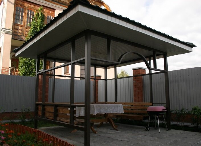 Чтобы садовая беседка была прочной, строители прибегают к проверенному временем стройматериалу – металл. Он не гниет и не деформируется, как древесина. А если пользователей будущей беседки волнует коррозия, то на этот счет рынок уже давно предлагает нержавеющую сталь, бронзу, медь. Актуальность сварки В возведении беседки из металла своими руками есть одно «НО» – приходится прибегать к свариванию деталей друг с другом. А поскольку не каждый дачник располагает соответствующими навыками, целесообразно сообщить, что сварка бывает нескольких видов: В силу своей бюджетности и практичности дуговая сварка лучше всего подходит для сборки беседки. Она заключается в нагреве и расплавлении металла (заготовки или электрода) за счет образования электрической дуги. Для соответствующего мероприятия необходимо приобрести сварочный аппарат, электродержатель, электроды. Кроме дуговой сварки беседку также можно собрать с помощью газовой горелки. Однако она менее безопасна и дорого обходится – понадобят