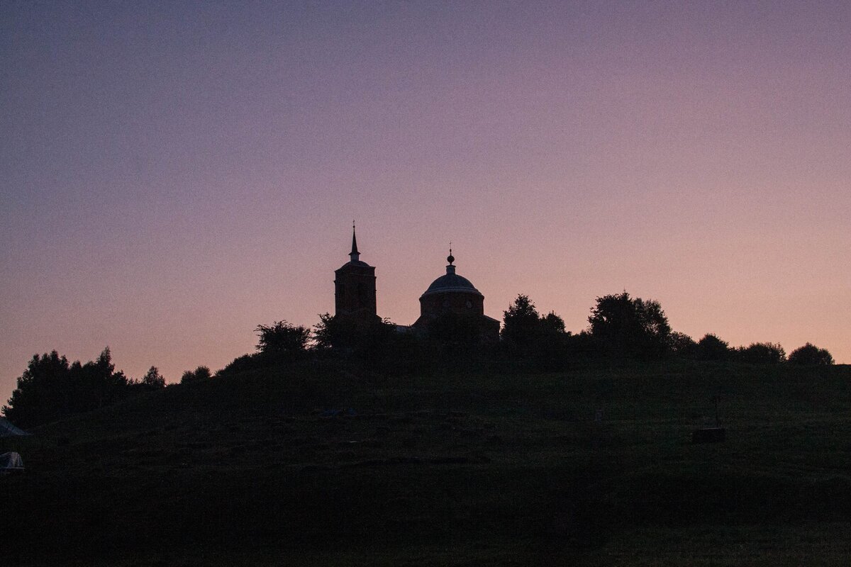 Церковь Троицы Живоначальной - действующая церковь прилегающей к парку деревни. Она стоит на высоком берегу реки Угры и переглядывается с Маяком. Церковь построена в самом начале 19 века в классическом стиле. В советские годы церковь была закрыта, использовалась как бытовое здание, отчего внутренне убранство ее сильно пострадало. Но находиться в ней или вблизи нее очень приятно. А еще можно делать фотографии на фоне церкви. Например вот стрекоза не удержалась ;)