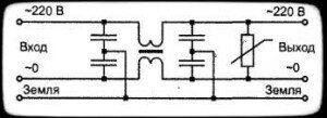 На рис.1 видна схема фильтра, которая комбинированна с ограничителем перенапряжений.
