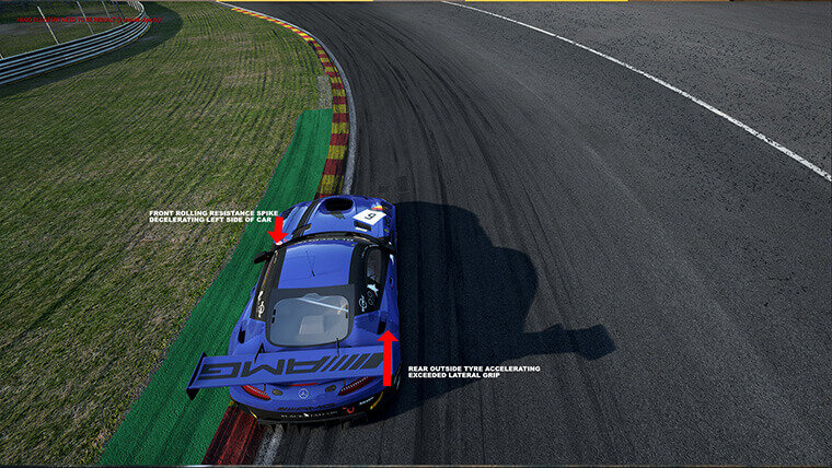 В качестве примера. Многие люди видят в реальной жизни левый внутренний поребрик в Eau Rouge (Красная вода), загрязненным шинами, и думают, что настоящие пилоты злоупотребляют им из-за наилучшего сцепления. Они пытаются повторить это в ACC и получают мгновенный разворот. На самом деле, вам просто нужно немного коснуться бордюра, и вы можете почувствовать его и оставить на нем следы своих шин. В ACC водитель, вероятно, будет думать, что у него все еще есть немного места, и на следующем круге он попытается пройти еще ближе.