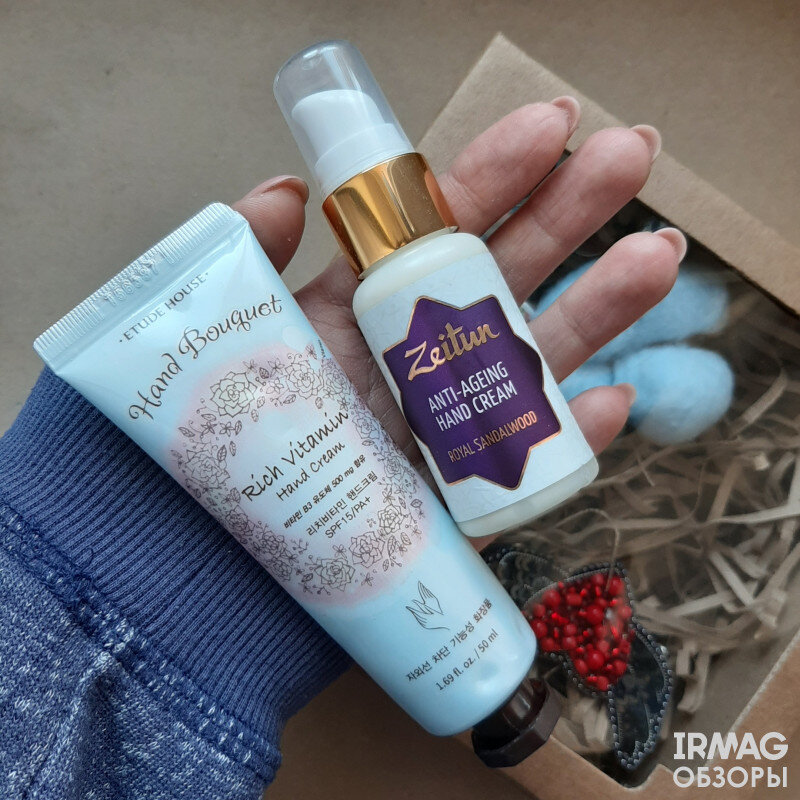 Сравнительный обзор витаминного крема для рук Etude House Hand Bouquet Rich Vitamin Hand Cream и антиоксидантного крема для рук Zeitun Zeitun Королевский сандал С приходом холодов без хорошего крема для рук, как без рук. Ухоженные руки – далеко не мелочь, поэтому перед зимушкой просто задача максимум позаботиться о надлежащем уходе. Сегодня я сравню два крема из одной ценовой категории (около 500 рублей). Первый крем - от Zeitun, имеет антиоксидантные свойства и омолаживающий эффект. Ни для кого же не секрет, что по рукам, зачастую, определяется возраст человека? С возрастом кожа теряет упругость, влагу. И, если за лицом мы так или иначе следим больше, то руки зачастую обходятся без должного внимания. В составе антивозрастного крема для рук мощные антиоксиданты и увлажняющие природные компоненты, оказывающие регенерирующие и лифтинг-действия.