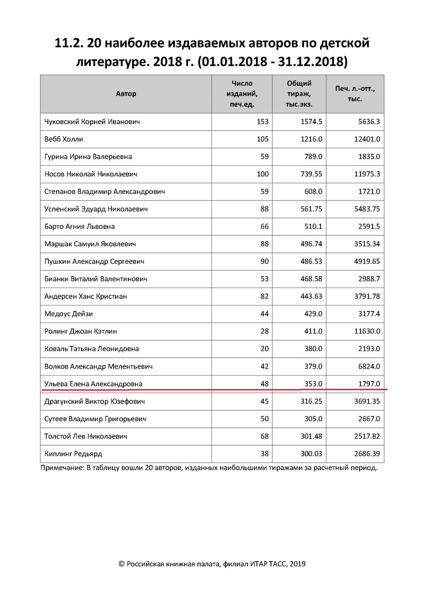 Неожиданный и приятный сюрприз ждал меня, когда прислали статистику книжной палаты за 2018 год. Оказывается вошла в топ-20 детских авторов по итогам года, заняв 16 место!