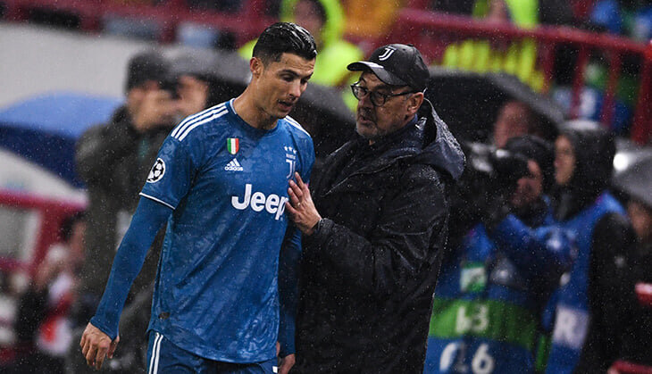 Ушел при ничейном счете и без гола впервые с 2014-го. Кроме штрафного, после которого ошибся Гильерме, Криштиану Роналду за два матча против «Локо» не сделал почти ничего сверхопасного. После туринской игры можно отметить, что по цифрам Криш был в порядке, но моменты не решал. В Москве все повторилось, «Локо» (чаще остальных – Мацей Рыбусь) справился и при схеме в четыре защитника. Самое удивительное, что Маурицио Сарри не выдержал и заменил Роналду на 80-й минуте: выпустил Пауло Дибалу, который перевернул домашний матч. Криштиану, уходя с поля, не пожал руку тренеру (хотя Сарри вроде бы ее и не протягивал). Объяснение тренера «Юве»: «Он заменен из-за опасений за его физическое состояние. Уже в конце первого тайма были признаки для беспокойства, во втором тайме тоже были такие моменты, когда он ускорялся. Опасались, что он может получить повреждение, которое может помешать ему в будущем». Все же остановимся подробнее, чтобы убедиться: такая замена – большущая редкость. Вообще Роналду