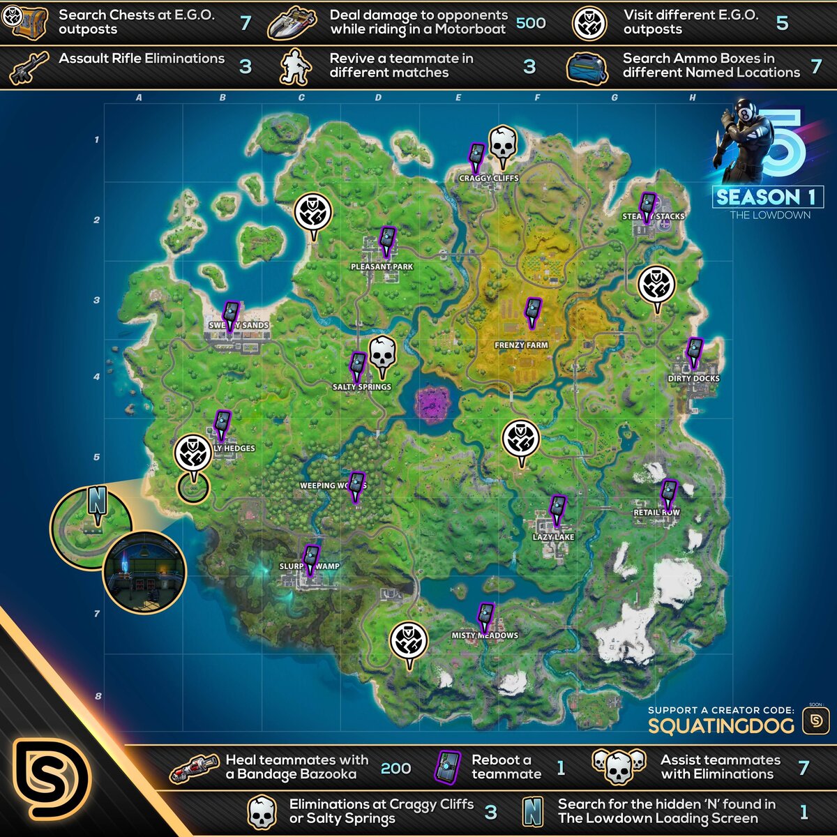Найдите букву N, подсказка - на экране загрузки "Нешуточная битва" + чит карта на испытания 5 недели Fortnite