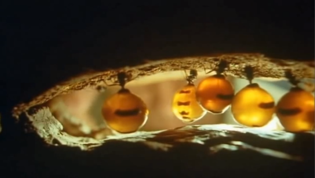 Медовый муравей-экологическая группа, включающая муравьёв нескольких различных родов. Они разработали уникальный способ хранения медовой росы, побочный продукт пищеварения, который собирается в основном из выделений тли и чешуйчатых насекомых. Рабочий муравей, которого кормят другие, называется сытым. Медовая роса хранится в брюшной полости сытого, которая может растянуться во много раз по сравнению с ее нормальным размером. Изобилие свисает с потолка подземной камеры, иногда на месяцы, пока колония муравьев не нуждается в хранящейся пище. После стимуляции, обильно отрыгивает сладкую медовую росу. Различные медовые муравьи, по-видимому, развили этот способ хранения независимо друг от друга. В некоторых странах медовые муравьи считаются большим деликатесом; их можно есть целиком или только золотистое брюшко. Основные места обитания медовых муравьев – это пустыни Мексики, Австралии и западной части США, отличающиеся очень малым количеством пищи и воды. Спасибо, что дочитали статью,