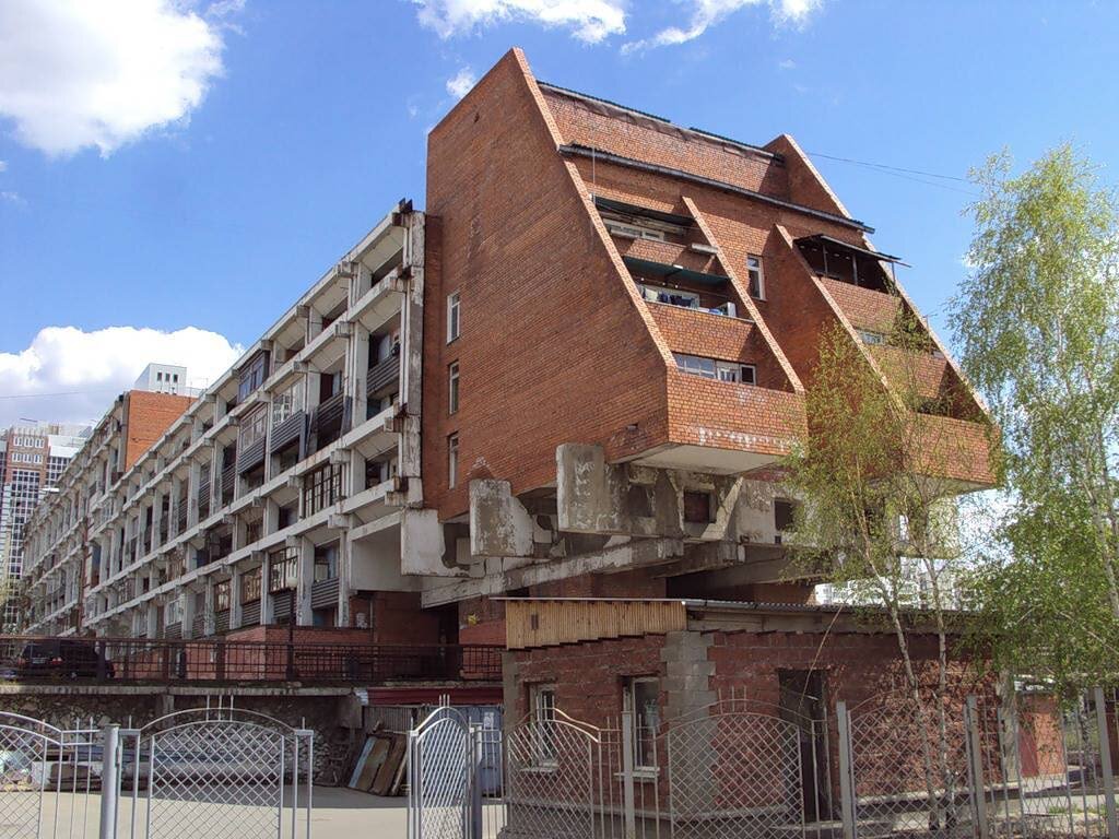 В Сибирь необрутализм добрался ближе к 70-80-ым годам и пришелся очень кстати, ведь тогда материальная база была, довольно, скудной, а к зданиям выдвигалось официальное требование о сборности конструкции из уже заготовленных блоков (панельные многоэтажные дома – наглядный пример).