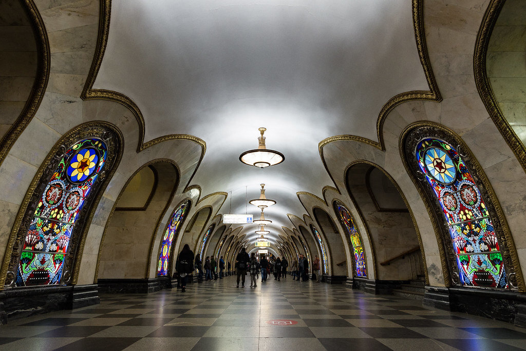 В будничной суете пассажиры московской подземки, как правило, редко замечают красоту внутреннего убранства станций. А ведь над оформлением вестибюлей трудились множество талантливых архитекторов и скульпторов. Представляем вам список самых красивых станций по мнению редакции Mockva.ru. Новослободская Главное украшение вестибюля «Новослободской» - стеклянные витражи, обрамленные золоченой латунью. Всего таких панелей здесь 32. После открытия станции горожане стали называть ее «Каменным цветком» или «Подземной сказкой». Автор этих витражей был приглашен архитектором Алексеем Душкиным. В центре вестибюля изображено мозаичное панно «Мир во всем мире» - работа иконописца Корина, созданная по образу и подобию иконы Божией Матери. Комсомольская Проект этой станции разрабатывал автор Мавзолея, здания Центрального телеграфа и Казанского вокзала, под которым расположена станция, Алексей Щусев. Оформление станции выполнено в стиле сталинского ампира. Потолок «Комсомольской» украшен восемью мозаич