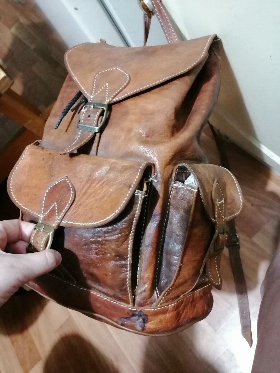 Как найти Винтажный рюкзак из натуральной кожи за 100 рублей