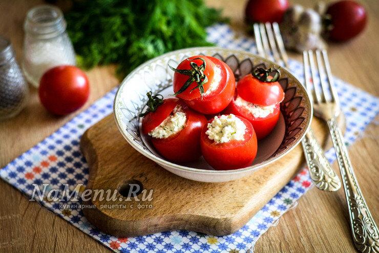 Помидоры, фаршированные брынзой, чесноком и зеленью
