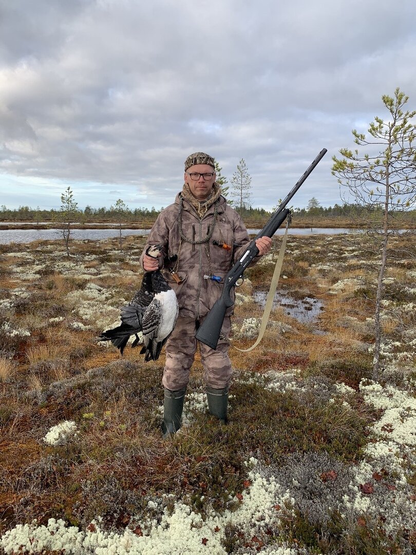 Нашли. Снова топор, скрадок, расстановка и дни ожидания при пустом небе. Нашими соседями по болоту били местные охотники, которых поразило, что мы охотимся с духовыми манками и у нас в принципе нет "электроники". Познакомились, разговорились. Ребята сетов