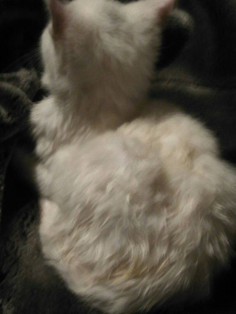 Вчера, возвращаясь домой, волонтер Елена Х. услышала характерный, тоненький писк. Думала, что в кустах совсем малявочка. Но, на первый же ее " кис- кис" выбежало серо-чумазое (Боженькой изначально задуманное беленьким), месяцев 3-4 создание. Незадача))) В руках 3 пакета с замороженными куриными головами, крупой и косточками для собачьей каши, как дитя домой нести? )) Пришлось в этих же кустах оставить купленные в долг продукты, ( увидел бы кто дурную тетку в этот момент)) женщина взяла пакет с хлебушком и котёнка, и пошли домой. Муж, святой человек, дай Бог ему сил и терпения, увидев волонтера во дворе с 15 котиком, единственное, что спросил: "Пацан или девчонка?" и пошёл забирать ее сумки. Так в домашнем мини-приюте Елены Х. вчера появилась малышка Ассоль, Асенька. После купания оказавшаяся абсолютно белоснежным пушистым комочком. Ася ласковая, явно бывшедомашняя, горшок сразу нашла. Кушает все, сейчас, пока отъедается, приходится от мисочки забирать, иначе, становится р
