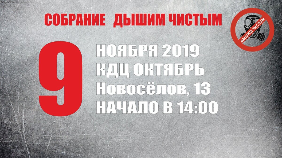 В субботу 9 ноября в КДЦ "Октябрь" состоится собрание РРОО "Дышим Чистым".