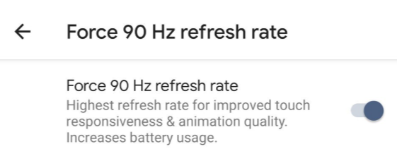 Сопоставим факты. Матрицы OLED в подавляющем большинстве мерцают на частоте 240 Гц. Такое мерцание отлично сочетается с частотой обновления экрана в 60 Гц; на одно обновление приходится ровно 4 пульсации. А если частота обновления экрана будет 90 Гц? 240 на 90 нацело не делится. То есть, получается дробное количество пульсаций на одно обновление экрана – и это способно отрицательно повлиять на опыт использования устройства. Соответственно, развёртка экрана в 90 Гц у Google работает только на тех уровнях яркости, на которых нет мерцания – видимо, такой подход позволил избежать артефактов при анимации. Для тех же, кто хочет именно 90 Гц, есть настройка в Developer Settings.