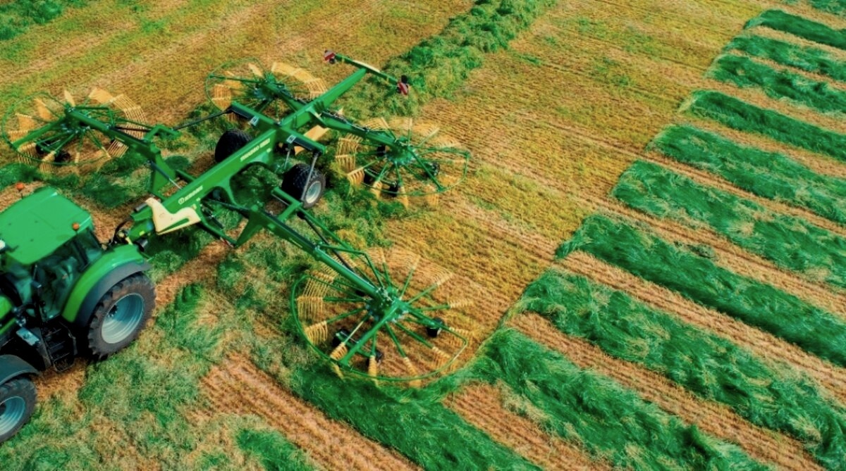 KRONE добавляет в линейку валкователей 4-роторный валкователь с центральной укладкой валка. В серийной комплектации валкователь имеет регулируемую гидравлическую систему снятия нагрузки, электрическую регулировку высоты роторов и регулируемое поднятие на разворотной полосе. Рабочая ширина захвата варьируется от 10,80 м до 13,70 м, а ширина валка составляет от 1,40 м до 2,60 м. Swadro TC 1370 обладает вариативным списком достоинств: 1. 2-точечное навесное устройство или прицепное устройство шарового типа 80. 2. подключение к трактору через гидравлическую систему с обратной связью Load-Sensing или через циркуляционный масляный контур. 3. Поставка с пневматической тормозной системой или с гидравлической тормозной системой. Также валкователь KRONE отличают некоторые инновационные решения в строении: 1. Конструкция валкователя. Валкователь отличается современным дизайном, в котором соединились новая конструкция прочной трапециевидной рамы и измененная навеска консолей. Механизм работы