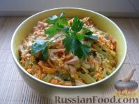 Подбираете вкусные салаты на Новый год? Простой, вкусный и сытный салат "Обжорка" с курицей рекомендую настоятельно отведать. Существует несколько видов этого салата, это самый простой и демократичный:) Подойдет в качестве блюда к новогоднему столу 2020 - рецепты для новогоднего стола можно приготовить и из простых продуктов, а салаты новогодние любят все. Нам понадобится Пошаговый рецепт Салат «Обжорка» с курицей Окорочок или куриное филе промыть. В холодную воду поместить куриное мясо. Курицу отварить в подсоленной воде до готовности (примерно 20 минут после закипания). Лук репчатый почистить, помыть и мелко нарезать. Морковь почистить, помыть и нарезать тонко соломкой или натереть на крупной терке. Куриное мясо отделить от костей, нарезать мякоть небольшими кусочками или порвать на кусочки. Нагреть сковороду, налить растительное масло. В горячее масло выложить подготовленную морковь. Обжарить морковь , помешивая, на среднем огне (около 3-5 минут). Дать остыть. Наг