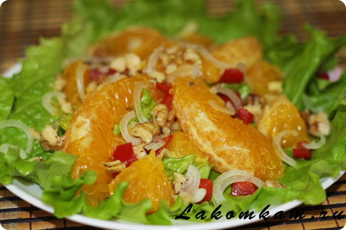 Сегодня попался очень оригинальный рецепт салата с апельсинами, который пришелся по вкусу всей семье.