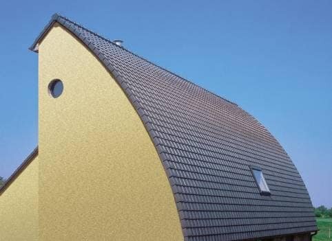 Именно поэтому керамическая черепица используется не только для покрытия скатных крыш. Сегодня существует множество выгнутых крыш, покрытых такой черепицей. Еще один новый прием - использование черепицы для покрытия наружных вертикальных стен. Как и распространение выгнутых крыш, эти изменения размыли строгие границы между крышами и наружными стенами.