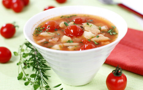 Блюда из нежной, низкокалорийной курочки – самое распространенное меню среди тех, кто следит за своей фигурой и здоровьем, ведь что может быть лучше еды, которая совмещает в себе приятное с полезным! Питаться вкусно и правильно вам помогут наивкуснейшие блюда из курицы! Низкокалорийные блюда из курицы с указанием калорий 1. Чесночные куриные ломтики на листике салата (калорийность на 100 грамм – 110 калорий). Вам понадобятся:куриная грудка в отварном виде (100-200 грамм), 5 зубчиков чеснока, укроп, 1 ст. ложка оливкового масла, листья салата, лимон, соль перец по вкусу. Приготовление: отварную куриную грудку нарезать длинной тоненькой соломкой в глубокую посуду, добавить протертый чеснок, укроп, оливковое масло, соль и перец (на усмотрение), все тщательно перемешать, на тарелочку выложить лист салата, сверху горкой положить куриные ломтики, украсить дольками лимона. 2. Легкий супчик с курицей и помидорками черри (калорийность на 100 грамм – 100 калорий). Вам понадобятся: