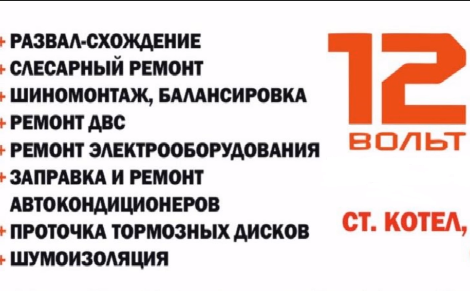 Оказание услуг по ремонту автомобилей 8-915-521-61-86 развал-схождение ремонт двс и мкпп проточка тормозных дисков заправка и ремонт автокондиционеров шиномонтаж и балансировка колес слесарный ремонт шумоизоляция ремонт электрооборудования ремонт узлов электрооборудования(генераторы,стартеры) от спецтехники с проверкой на стенде ВК - https://vk.com/av12volt