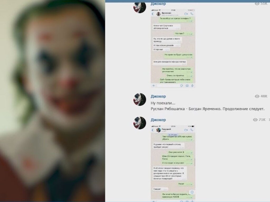 С 31 октября в информационном пространстве стали появляться скриншоты телефонной переписки с депутатами от «Слуги народа», сделанные неким пранкером, который называет себя «Джокер». Пока обнародовано общение с Богданом Яременко, Михаилом Радуцким и Николаем Тищенко.