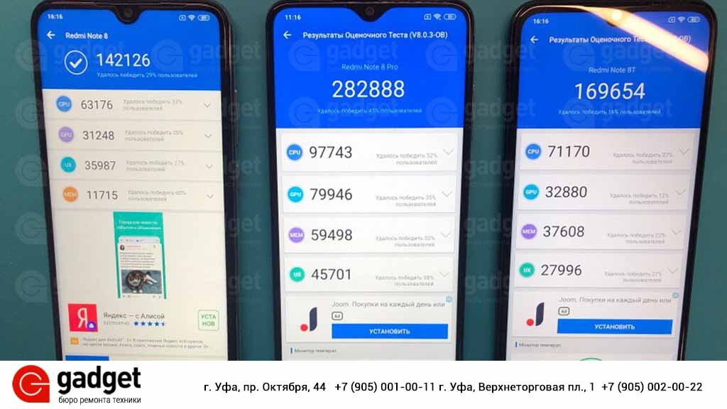 - самый высший балл набрал Xiaomi Redmi Note 8 Pro — 282888.