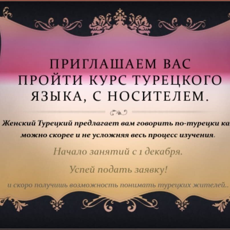 Друзья! С 1 декабря начинаются курсы турецкого языка! Приглашаем Вас к нам! Более подробная информация на фото и в группе инстаграмма @kadinturkcesi Для записи пишите сюда в телеграмм https://t.me/kristurkey или в директ инстаграмма @kadinturkcesi по ссылке https://www.instagram.com/invites/contact/?i=1n5s7e13xcecg&utm_content=5zphcky
