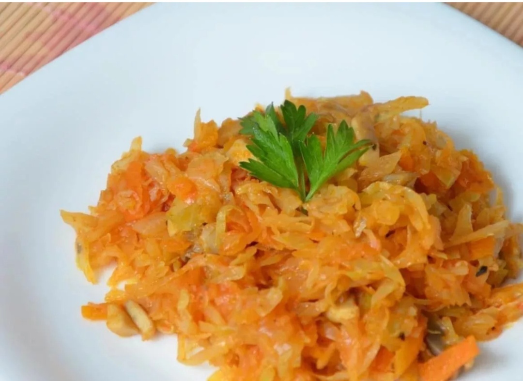 Капустный кочан нашинковать, поместить в глубокую миску и посыпать солью. Тщательно размять до смягчения. Высыпать в разогретую сковороду, влить воды. Добавить перец и немного соли. Тушить, изредка помешивая, около З0 мин.