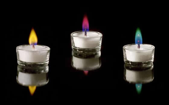 - Хлорид натрия – свеча горит красным цветом Свечи, в которые добавлены хлориды для разноцветного горения являются абсолютно безопасными и не имеют посторонних запахов. Но по сроку горения уступают обычным свечам. Так как цветные хлориды способствуют горению, при котором воск плавится