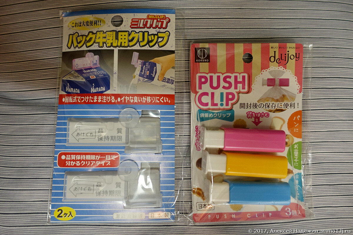 Второй "гаджет" закрывет обычные пакеты, но не так, как икеевские клипсы, а удобней - нажимается кнопка, пакет просовывается в открывшуюся щель, кнопка отпускается и пакет зажимается.