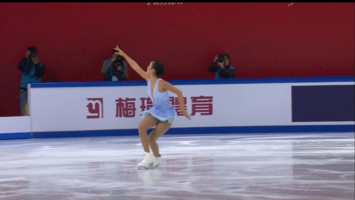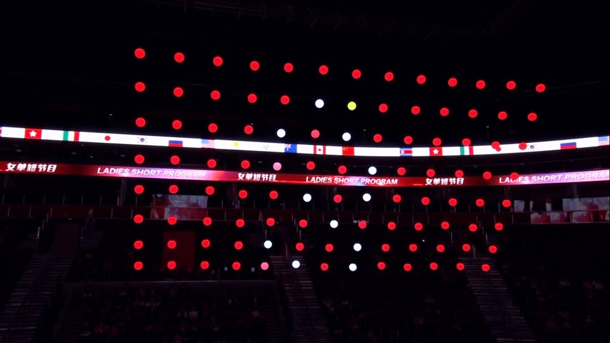 Сразу бросается в глаза как здорово преподносят соревнование китайцы. Свое видение того, как нужно показывать фигурное катание. Любят вращения сверху показывать. Странно, так как красота когда сбоку просмотр, мне кажется. В целом ракурсы отдаленные, чтоб в масштабе всего катка показать катание. В этом даже что-то есть. Ну и в целом это выглядит как большой праздник и для зрителей и для спортсменок.