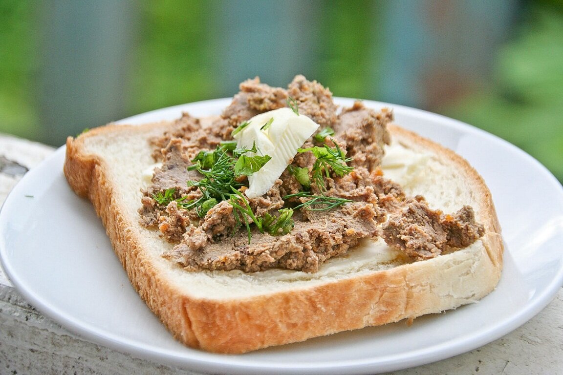Сваренную печень вынимаем, слегка остужаем. Дальше зависит от того что у вас есть, блендер, мясорубка -перетираем или проворачиваем нашу печень с овощами,с которые она отваривалась (лаврушку выкидываем) и туда же добавляем вторую луковицу.