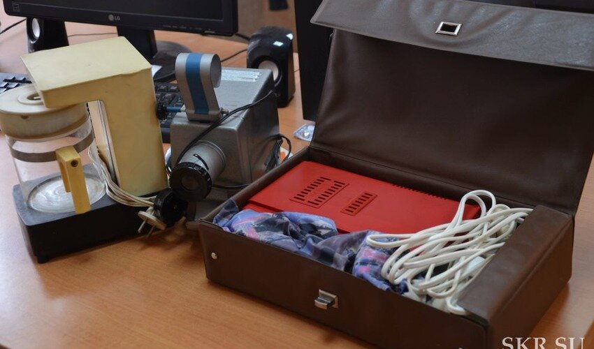 В коллекцию интересных советских гаджетов, которую собирает для выставки skr.su добавился фен 1989 года выпуска, кофеварка 1983 года и проектор для диафильмов того же периода. Их принес в редакцию житель Южно-Сахалинска Борис Кабанец, наш постоянный читатель. Мужчина продемонстрировал, как работает каждый прибор. И, конечно, у каждого гаджета есть своя небольшая история. Например, достав аккуратно упакованный фен из коричневого сундучка, Борис вспомнил праздничный день и свою жену. — Это советский фен в полном комплекте, с расческой, щипцами, специальной шапочкой. Я подарил его жене на 8 Марта, — поделился Борис. — Тогда это была новинка, считай, только выпустили, а у моей жены такой же был. Устройство (а хочется называть фен именно так) на современный взгляд довольно сложное. Нужно одеть шапочку, которая явно «заточена» под бигуди, к одному из двух отверстий подсоединить шланг-гармошку. Он коротковат, прибор явно нужно закреплять на стене у зеркала, чтобы было удобнее пользоваться. Гл