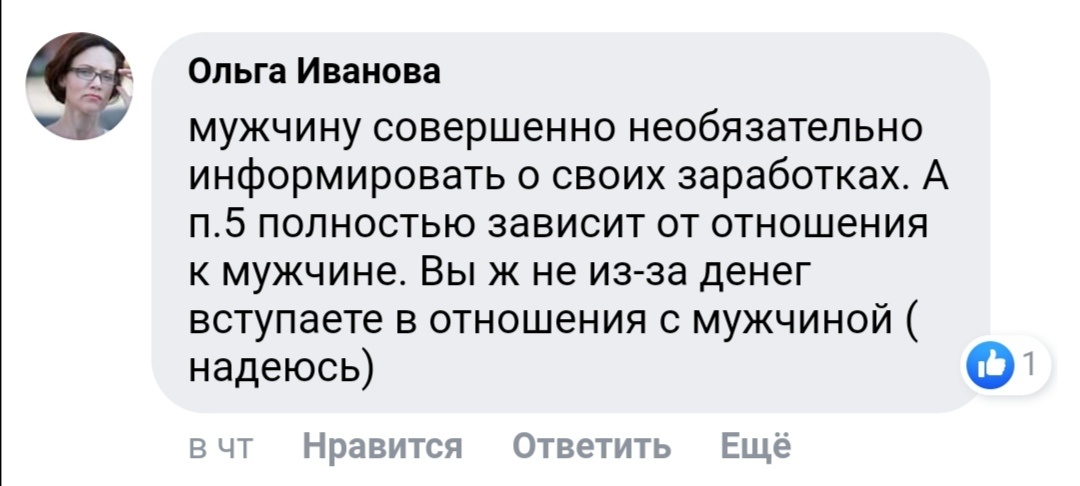 4. Мои финансовые успехи могут мотивировать мужчину перестать меня обеспечивать (такое у меня реально было в жизни).