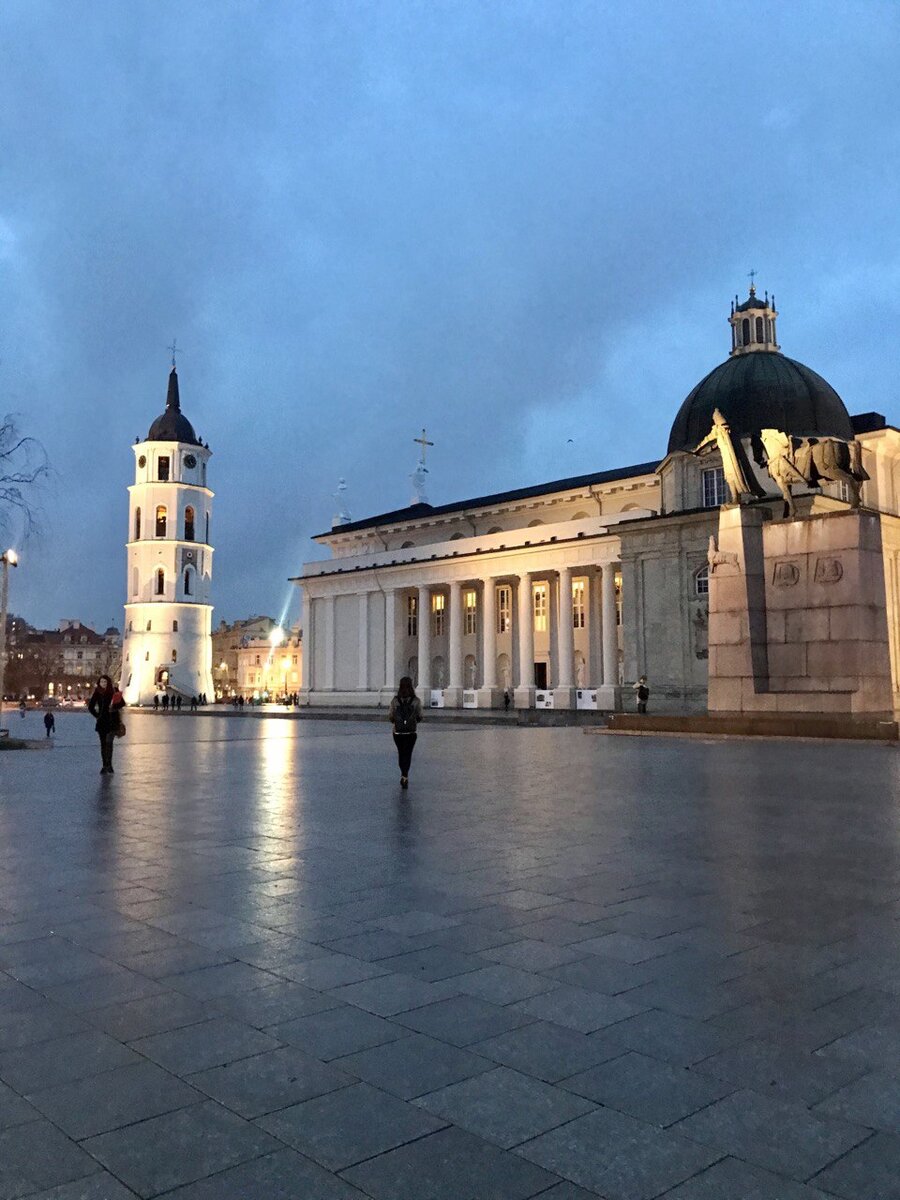 Атмосфера города... ✨ Это одна из немногих вещей, благодаря которой можно полюбить Вильнюс. ⠀ Десятки кофеен, узкие уютные улочки Старого Города, красивая архитектура - всё это присутствует в Вильнюсе. ☀️ ⠀ А на фото одно из красивейших мест города - Кафедральная площадь 🌇 на которой вскоре будет стоять ёлка 😍