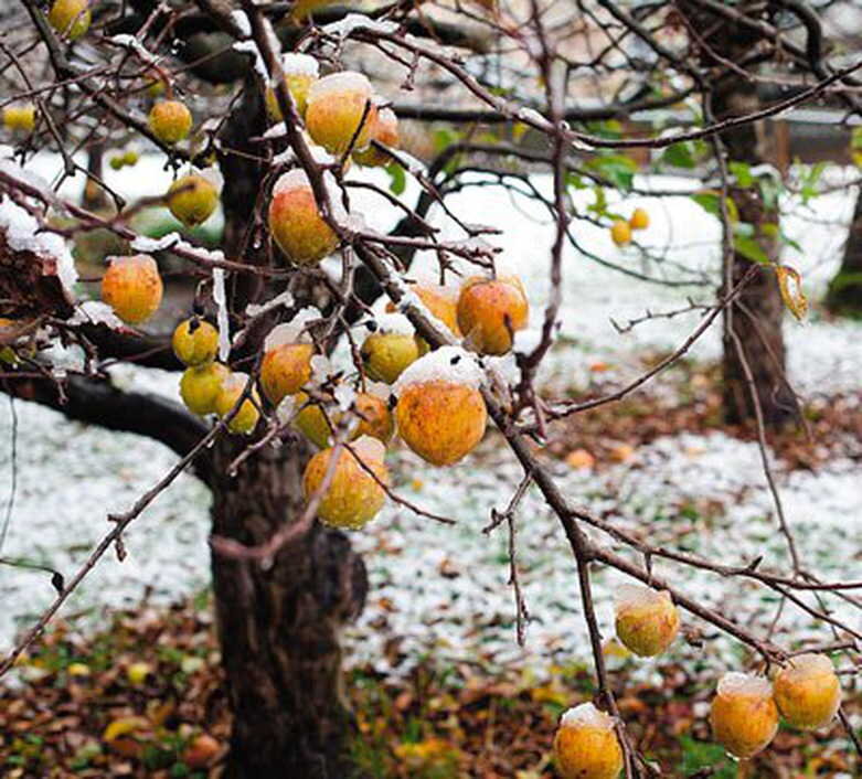 - Видовые мелкоплодные яблони – я. Недзведского, я. Зибольда, я. саржента, я. ягодная и другие – украшают сад яблочками, чья расцветка при созревании меняется до светло-желтой и темно-красной. У молодых яблонь окучивают стволы, мульчируют приствольные круги (компост, торф, перепревший навоз). Их слабо обрезают при температуре не ниже +5°С – вырезают сухие, сломанные ветви, затем удаляют слабые, близко расположенные побеги, ветки, растущие под острым углом. Срезы обрабатывают садовым варом.