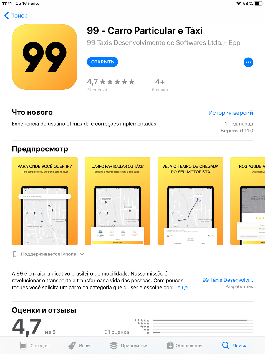 Приложение очень правильно определяет ваше местоположение, такси всегда приезжало в нужную точку. В Москве у меня регулярно случались ситуации, когда таксист приезжал не в то место, или звонил заранее для уточнения места посадки. Такого же я опасался и в Бразилии, ведь португальского я не знаю, но всегда встречались с такси без знания языка.