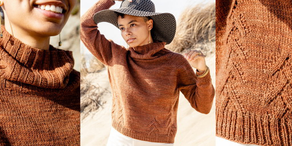 Женский свитер реглан вязаный спицами сверху вниз с полосами ажура в нижней части полочки. Высокий ворот, немного ажура и хороший припуск способны придать классическому свитеру модный стильный look. Дизайнер Тея Колман после серии моделей, связанных разнообразными косами, решила создать свитер связанный простой вязкой, позволив вступить в игру легким цветовым переходам пряжи, окрашенной натуральными красителями. Взяв пряжу с содержанием альпаки или любой другой мягкой шерстью, этот свитер получит такую легкость и драпировку, что способен будет занять место серди ваших любимчиков на долгие годы. Описание