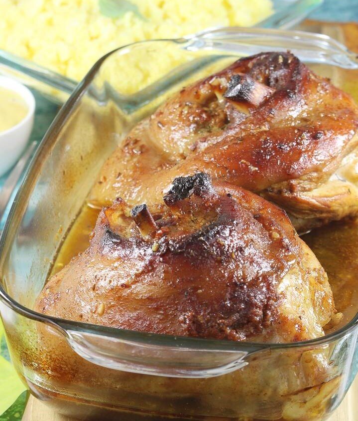 Ингредиенты для приготовления Ингредиенты для выпечки Перед приготовлением рульки желательно опалить Вымойте все овощи Очистите морковь Сжечь лук с помощью горелки или разрезать пополам и жарить некоторое время в сухой сковороде или над горелкой газовой плиты. Положите свиные ножки и приготовленные овощи в кастрюлю объемом около пяти литров. Добавьте 2 лавровых листа, 4 душистых перца, чайную ложку соли и перца. Наконец, налейте воду. Вы должны полностью покрыть свиную рульку водой. Совет : Вы также можете добавить овощи в отвар за час до выключения. Однако я обычно готовлю овощи со свиными ножками в течение целых двух часов. Накройте кастрюлю крышкой и доведите до кипения. Уменьшите мощность горелки и готовьте рульки в течение двух часов. По истечении этого времени выловите свиную рульку и положите ее на блюдо для охлаждения. Налей себе один стакан бульона. Вы будете использовать его для запекания свиных ножек в духовке.