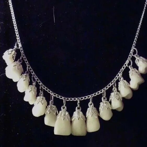 С древнейших времен человек украшал себя ожерельями. Археологи и этнографы предоставляют нам возможность ознакомиться с эстетикой сознания охотника. Самые первые бусы были сделаны из зубов убитого зверя. Да и сами слова БУСЫ и зубы, а в транскрибции - СУБЫ , как мы можем видеть, являются тесно связанными, а вернее, анаграммами. Это и понятно, первобытный охотник отчетливо видел вблизи страшный звериный оскал, угрозу жизни, и его трофей, повешенный на шею, придавал ему храбрости. Ведь отныне он, подобно зверю, показывал зубы. Да и в человеческом социуме "дружелюбная" улыбка при первой встрече является, по мнению психологов, ничем иным, как расставлением приоритетов, угрозой, и предупреждением об опасности. Итак, надевая на себя БУЗЫ, мы, как и в древние времена, показываем другим ЗУБЫ. Давайте подумаем, какой подсознательный посыл несет то или иное наше послание. Итак. Два ряда белоснежных жемчужин. Тут все ясно. Я молод, здоров, и зубы мои крепки. Готов к сражению и к разм