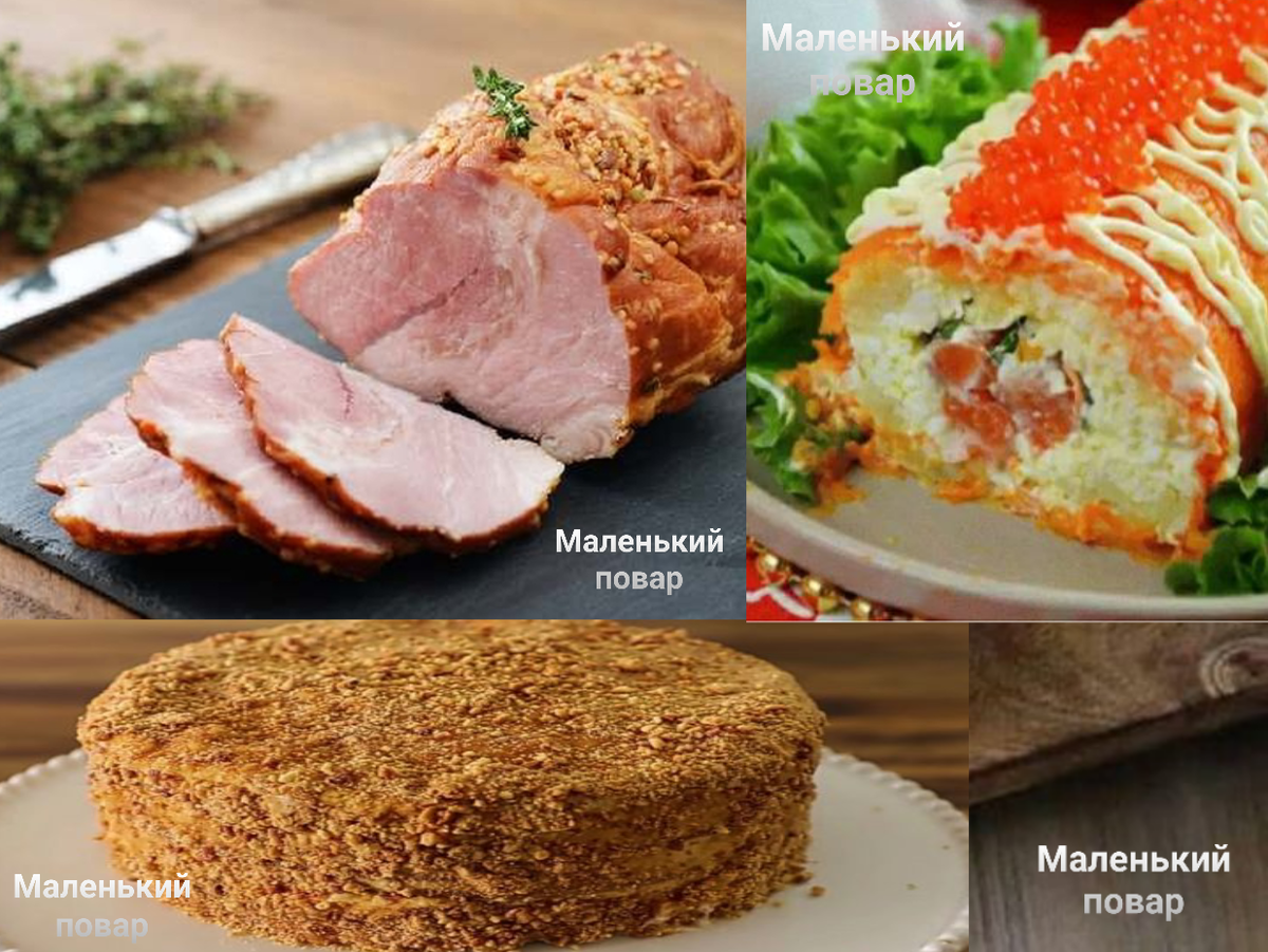 Самые вкусные и простые блюда на всеми любимый праздник Новый Год. Рецепт 1: Салат "Царский" Ингредиенты: • Красная икра 2 ст.л; • Яйцо 3 шт; • Форель либо Сёмга 200 гр; • Картофель 2-3 шт; • Майонез (по вкусу); • Морковь 3 шт; • Зелень: Шаг 1: Отвариваем овощи и яйца, и натераем их на мелкой тёрке. Морковь равномерным слоем размещаем на фальге размером 15x15 см и смазываем сверху майонезом. Затем на морковь выкладываем такой же слой картофеля и так же смазываем майонезом, далее на картофель наносимый такой же слой яиц и так же смазываем майонезом и зеленью. Далее на одну половину нашего слоённого салата выкладываем рыбу и заварачиваем наш рулет в фальгу ровной колбасой и убираем салат в холодильник на 6-7 часов. Шаг 2: После того как рулет охладился, осторожно достаньте его из холодильника и разверните, выложите его на тарелку, полёте с верху майонезом и равномерным слоем нанесите икру на салат. Наш салат готов, приятного аппетита. Рецепт 2: Бужанина "Новогодняя" Ингредиенты