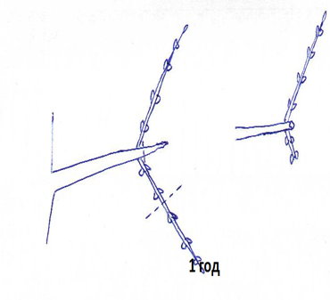 5.При обрезке на перевод (на удачно расположенную ветвь) культур с супротивным расположением побегов необходимо оставлять побег с противоположной стороны. Этот побег укорачивают (оставляют 2-3 узла), а на следующий год вырезают полностью. Это необходимо чтобы сосудистая система перестроилась на отвод сока в переводимую ветвь и, следовательно, не произошло отмирание с противоположной стороны.