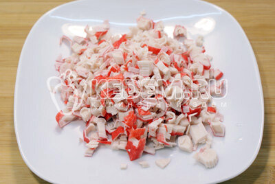 Крабовые палочки 100 г Сыр твердый 100 г Яйца 4 шт Морковь 2 шт Майонез 4 ст. л. Петрушка (зелень) для украшения Свежий огурец для украшения 1/4 шт Приготовление: Крабовые палочки мелко нарезать. Выложить на блюдо в один слой крабовые палочки и хорошо смазать майонезом. Вторые слоем выложить тертый сыр и смазать майонезом. Третьим слоем выложить отварную тертую морковь и смазать майонезом. Четвертым слоем покрыть тертыми отварными белками яиц и смазать майонезом. Посыпать сверху салат тертыми отварными желтками яиц и украсить зеленью, ломтиками свежего огурца. Остудить в холодильнике 2 -3 часа и подавать к столу. С Наступающим Новым годом!